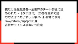 俺だけ最強超越者~全世界のチート師匠に認められた~【タテヨミ】 俺だけ最強超越者~全世界のチート師匠に認められた~【タテヨミ】 25巻を無料で読む方法は?あらすじ&ネタバレ付きで紹介|raw/hitomi/zip/pdfの違法性やウイルス被害にも注意