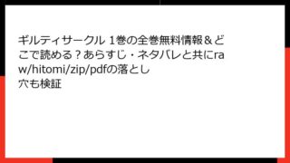 ギルティサークル ギルティサークル 1巻の全巻無料情報&どこで読める?あらすじ・ネタバレと共にraw/hitomi/zip/pdfの落とし穴も検証 ギルティサークル 1巻:大学サークルの闇に潜むサスペンスの渦 新学期のワクワク感と、未知の出会いの予感に満ちた大学生活。誰もがそんな理想を夢見てキャンパスに足を踏み入れるが、現実は時に予想外の恐怖を呼び起こす。『ギルティサークル』1巻は、そ... 2025.10.02 ギルティサークル少年マンガ