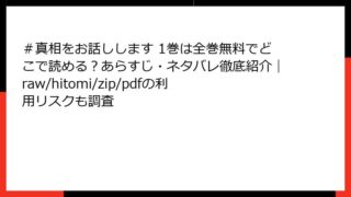 #真相をお話しします #真相をお話しします 1巻は全巻無料でどこで読める?あらすじ・ネタバレ徹底紹介|raw/hitomi/zip/pdfの利用リスクも調査