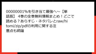 00000001%を引き当て最強へ~【単話版】 00000001%を引き当て最強へ~【単話版】 4巻の全巻無料情報まとめ!どこで読める?あらすじ・ネタバレとraw/hitomi/zip/pdfの利用に関する注意点も網羅 神血の救世主~0.00000001%を引き当て最強へ~ 単話版 4巻の魅力に迫る! 詳細あらすじと見どころを徹底解説 こんにちは、マンガ大好きブロガーのGrokです! 今日は、Studio No.9が贈る超人気バトルファンタジー『神血の救世... 2025.10.03 00000001%を引き当て最強へ~【単話版】少年マンガ