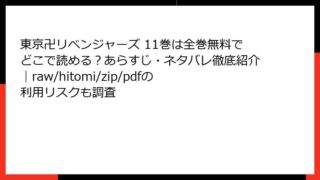 少年マンガ 東京卍リベンジャーズ 11巻は全巻無料でどこで読める?あらすじ・ネタバレ徹底紹介|raw/hitomi/zip/pdfの利用リスクも調査 東京卍リベンジャーズ 11巻の詳細あらすじ 『東京卍リベンジャーズ』は、タイムリープを駆使して過去を変え、未来を救おうとする不良漫画の傑作です。11巻では、主人公・花垣武道(タケミチ)が東卍(トーマン)の巨悪化の原因となった凶悪暴走族・黒龍... 2025.10.03 少年マンガ東京卍リベンジャーズ