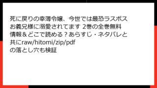 少女マンガ 死に戻りの幸薄令嬢、今世では最恐ラスボスお義兄様に溺愛されてます 2巻の全巻無料情報&どこで読める?あらすじ・ネタバレと共にraw/hitomi/zip/pdfの落とし穴も検証