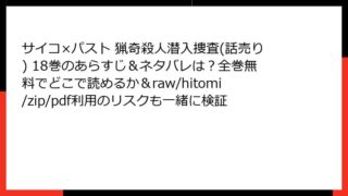 サイコ×パスト 猟奇殺人潜入捜査(話売り) サイコ×パスト 猟奇殺人潜入捜査(話売り) 18巻のあらすじ&ネタバレは?全巻無料でどこで読めるか&raw/hitomi/zip/pdf利用のリスクも一緒に検証 サイコ×パスト 猟奇殺人潜入捜査(話売り)18巻の詳細あらすじ 本作は、猟奇殺人事件をテーマにしたサイコサスペンス漫画で、主人公の五代一徹が過去の被害者の意識に潜入し、事件を未然に防ごうとする異色のストーリー展開が魅力です。18巻では、物語... 2025.10.05 サイコ×パスト 猟奇殺人潜入捜査(話売り)少年マンガ