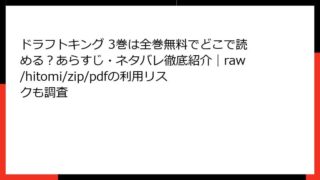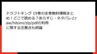 ドラフトキング ドラフトキング 19巻の全巻無料情報まとめ!どこで読める?あらすじ・ネタバレとraw/hitomi/zip/pdfの利用に関する注意点も網羅