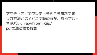 アマチュアビジランテ アマチュアビジランテ 4巻を全巻無料で楽しむ方法とは?どこで読めるか、あらすじ・ネタバレ、raw/hitomi/zip/pdfの違法性も確認 アマチュアビジランテ 4巻の魅力的なあらすじ ヤングマガジンで連載中のバイオレンスアクション漫画『アマチュアビジランテ』は、39歳の主人公・尾城慎太郎が社会の底辺から這い上がり、ヤクザを相手に壮絶な戦いを繰り広げる物語です。第4巻では、主人... 2025.10.06 アマチュアビジランテ青年マンガ