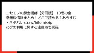 ニセモノの錬金術師【分冊版】 ニセモノの錬金術師【分冊版】 10巻の全巻無料情報まとめ!どこで読める?あらすじ・ネタバレとraw/hitomi/zip/pdfの利用に関する注意点も網羅
