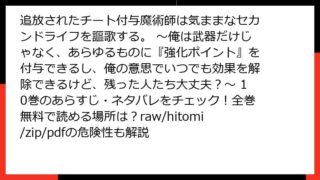 少年マンガ 追放されたチート付与魔術師は気ままなセカンドライフを謳歌する。 ~俺は武器だけじゃなく、あらゆるものに『強化ポイント』を付与できるし、俺の意思でいつでも効果を解除できるけど、残った人たち大丈夫?~ 10巻のあらすじ・ネタバレをチェック!全巻無料で読める場所は?raw/hitomi/zip/pdfの危険性も解説