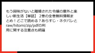 もう興味がないと離婚された令嬢の意外と楽しい新生活【単話】 もう興味がないと離婚された令嬢の意外と楽しい新生活【単話】 2巻の全巻無料情報まとめ!どこで読める?あらすじ・ネタバレとraw/hitomi/zip/pdfの利用に関する注意点も網羅