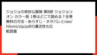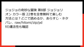 ジョジョの奇妙な冒険 第8部 ジョジョリオン カラー版 ジョジョの奇妙な冒険 第8部 ジョジョリオン カラー版 22巻を全巻無料で楽しむ方法とは?どこで読めるか、あらすじ・ネタバレ、raw/hitomi/zip/pdfの違法性も確認