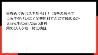 天野めぐみはスキだらけ! 天野めぐみはスキだらけ! 25巻のあらすじ&ネタバレは?全巻無料でどこで読めるか&raw/hitomi/zip/pdf利用のリスクも一緒に検証 天野めぐみはスキだらけ! 25巻の魅力に迫る:高校最後の夏の甘酸っぱい物語 こんにちは、漫画好きの皆さん! 今日は、ねこぐち先生の人気ラブコメディ『天野めぐみはスキだらけ!』の25巻について、詳しくお届けします。この作品は、剣道に打ち込むぷ... 2025.10.08 天野めぐみはスキだらけ!少年マンガ