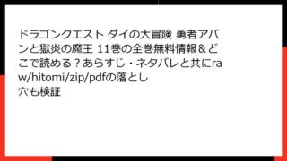ドラゴンクエスト ダイの大冒険 勇者アバンと獄炎の魔王 ドラゴンクエスト ダイの大冒険 勇者アバンと獄炎の魔王 11巻の全巻無料情報&どこで読める?あらすじ・ネタバレと共にraw/hitomi/zip/pdfの落とし穴も検証 『ドラゴンクエスト ダイの大冒険 勇者アバンと獄炎の魔王』11巻:壮絶決戦の決着と新たな旅立ち こんにちは、ファンタジー漫画好きのブロガーです! 今日も熱い作品のレビューをお届けします。『ドラゴンクエスト ダイの大冒険 勇者アバンと獄炎の魔... 2025.10.09 ドラゴンクエスト ダイの大冒険 勇者アバンと獄炎の魔王少年マンガ