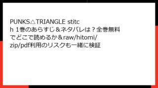 BLマンガ PUNKS△TRIANGLE stitch 1巻のあらすじ&ネタバレは?全巻無料でどこで読めるか&raw/hitomi/zip/pdf利用のリスクも一緒に検証 PUNKS△TRIANGLE stitch 1巻:推しと日常の狭間で揺れる心のトライアングル 皆さん、こんにちは! 今日のブログでは、沖田有帆先生の人気BL漫画『PUNKS△TRIANGLE』の続編である『PUNKS△TRIANGLE st... 2025.10.11 BLマンガPUNKS△TRIANGLE stitch