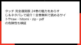 タッチ 完全復刻版 タッチ 完全復刻版 24巻の魅力をあらすじ&ネタバレで紹介!全巻無料で読めるサイトやraw・hitomi・zip・pdfの危険性も検証 タッチ 完全復刻版 24巻:甲子園への切符を懸けた激闘の記憶 あだち充の不朽の名作『タッチ』は、1981年から1986年にかけて『週刊少年サンデー』で連載された青春野球漫画の金字塔。全26巻にわたる物語は、双子の兄弟・上杉達也と上杉和也、そ... 2025.10.12 タッチ 完全復刻版少年マンガ