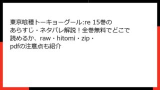 東京喰種トーキョーグール:re 東京喰種トーキョーグール:re 15巻のあらすじ・ネタバレ解説!全巻無料でどこで読めるか、raw・hitomi・zip・pdfの注意点も紹介 東京喰種トーキョーグール:re 15巻の深淵な物語に迫る! ネタバレ満載の詳細あらすじレビュー こんにちは、漫画好きの皆さん! 今日のブログでは、石田スイ先生の傑作『東京喰種トーキョーグール:re』の15巻にスポットを当ててみます。この巻は... 2025.10.12 東京喰種トーキョーグール:re青年マンガ