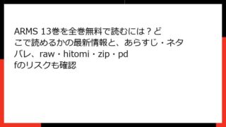 ARMS ARMS 13巻を全巻無料で読むには?どこで読めるかの最新情報と、あらすじ・ネタバレ、raw・hitomi・zip・pdfのリスクも確認 ARMS 13巻:激化する陰謀と仲間たちの絆 皆川亮二による不朽のSFアクション漫画『ARMS』は、ナノマシン兵器「ARMS」を巡る壮絶な戦いを描いた傑作です。全22巻にわたる長編ストーリーの中でも、13巻は物語の転換点となる重要な一冊。主... 2025.10.13 ARMS少年マンガ