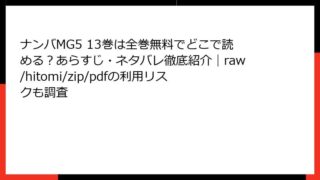 ナンバMG5 ナンバMG5 13巻は全巻無料でどこで読める?あらすじ・ネタバレ徹底紹介|raw/hitomi/zip/pdfの利用リスクも調査