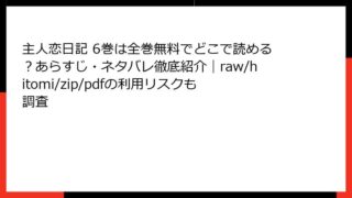 主人恋日記 主人恋日記 11巻はどこで読める?全巻無料の方法・あらすじ・ネタバレとraw/hitomi/zip/pdfの違法性も比較調査