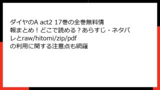 ダイヤのA act2 ダイヤのA act2 17巻の全巻無料情報まとめ!どこで読める?あらすじ・ネタバレとraw/hitomi/zip/pdfの利用に関する注意点も網羅 ダイヤのA act2 17巻:青道の激闘が再燃!沢村の覚醒とチームの絆を描く名エピソード 皆さん、こんにちは! 野球漫画の金字塔として君臨する『ダイヤのA act2』が、ついに17巻を迎えました。この作品は、寺嶋裕二先生の筆致で描かれる熱き... 2025.10.20 ダイヤのA act2少年マンガ