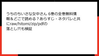 うちのちいさな女中さん うちのちいさな女中さん 6巻の全巻無料情報&どこで読める?あらすじ・ネタバレと共にraw/hitomi/zip/pdfの落とし穴も検証 うちのちいさな女中さん 6巻:秋風に舞う新たな絆の物語 こんにちは、漫画好きの皆さん! 今日も素敵な作品の魅力を語り尽くすこのブログへようこそ。今回は、昭和初期の東京を舞台に、心温まる日常とささやかな成長を描いた長田佳奈先生の傑作『うちのち... 2025.10.22 うちのちいさな女中さん青年マンガ