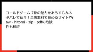 コールドゲーム コールドゲーム 7巻の魅力をあらすじ&ネタバレで紹介!全巻無料で読めるサイトやraw・hitomi・zip・pdfの危険性も検証