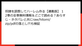 奴隷を調教してハーレム作る【連載版】 奴隷を調教してハーレム作る【連載版】 12巻の全巻無料情報&どこで読める?あらすじ・ネタバレと共にraw/hitomi/zip/pdfの落とし穴も検証 奴隷を調教してハーレム作る【連載版】12巻:ハーレムの深化と新たな絆の物語 こんにちは、漫画好きの皆さん! 今日は、アルデヒド先生の人気連載作品「奴隷を調教してハーレム作る【連載版】」の12巻について、詳しくあらすじを掘り下げてお届けします... 2025.10.25 奴隷を調教してハーレム作る【連載版】少年マンガ