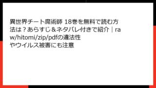 少年マンガ 異世界チート魔術師 18巻を無料で読む方法は?あらすじ&ネタバレ付きで紹介|raw/hitomi/zip/pdfの違法性やウイルス被害にも注意 異世界チート魔術師 18巻:エルフの里の陰謀とミューラの運命 皆さん、こんにちは! 異世界ファンタジーの大ファンである私にとって、『異世界チート魔術師』は欠かせない一作です。原作の内田健先生による魅力的なストーリーと、鈴羅木かりん先生のダイ... 2025.10.25 少年マンガ異世界チート魔術師