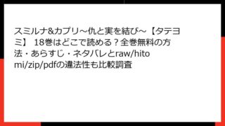 BLマンガ スミルナ&カプリ~仇と実を結び~【タテヨミ】 18巻はどこで読める?全巻無料の方法・あらすじ・ネタバレとraw/hitomi/zip/pdfの違法性も比較調査 スミルナ&カプリ~仇と実を結び~ 18巻:宿命の絆が試される激動の章 BLオメガバースの傑作としてファンを魅了し続ける『スミルナ&カプリ~仇と実を結び~』。この作品は、架空の帝国を舞台に、アルファとオメガの擬態という独自の設定で、禁断の恋と... 2025.10.26 BLマンガスミルナ&カプリ~仇と実を結び~【タテヨミ】