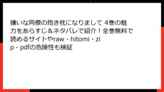 女性マンガ 嫌いな同僚の抱き枕になりまして 4巻の魅力をあらすじ&ネタバレで紹介!全巻無料で読めるサイトやraw・hitomi・zip・pdfの危険性も検証 嫌いな同僚の抱き枕になりまして 4巻:同居生活の甘い深まりを紐解く こんにちは、漫画好きの皆さん! 今日も心温まるラブストーリーを求めて、このブログへお越しくださりありがとうございます。今回は、北乃どらりぬ先生の人気作『嫌いな同僚の抱き枕に... 2025.10.28 女性マンガ嫌いな同僚の抱き枕になりまして