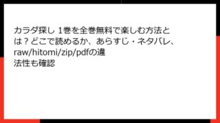 カラダ探し カラダ探し 1巻を全巻無料で楽しむ方法とは?どこで読めるか、あらすじ・ネタバレ、raw/hitomi/zip/pdfの違法性も確認 『カラダ探し』1巻:恐怖のデスゲームが幕を開ける! 詳細あらすじレビュー こんにちは、ホラー漫画好きのブロガーです! 今日は、少年ジャンプ+で大人気のパニックホラー作品『カラダ探し』1巻のあらすじを、ネタバレ満載で詳しく掘り下げてお届けしま... 2025.10.28 カラダ探し少年マンガ