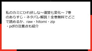 私のカミにひれ伏しな~復讐七変化~ 私のカミにひれ伏しな~復讐七変化~ 7巻のあらすじ・ネタバレ解説!全巻無料でどこで読めるか、raw・hitomi・zip・pdfの注意点も紹介 『私のカミにひれ伏しな~復讐七変化~』7巻:怪物が囁く復讐の新章 こんにちは、漫画好きのブロガーです! 今回は、熊田龍泉先生の傑作サスペンス『私のカミにひれ伏しな~復讐七変化~』の7巻について、詳しく深掘りしていきたいと思います。この作品は... 2025.10.31 私のカミにひれ伏しな~復讐七変化~青年マンガ