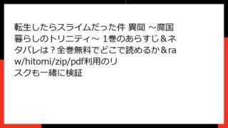 少年マンガ 転生したらスライムだった件 異聞 ~魔国暮らしのトリニティ~ 1巻のあらすじ&ネタバレは?全巻無料でどこで読めるか&raw/hitomi/zip/pdf利用のリスクも一緒に検証 転生したらスライムだった件 異聞 ~魔国暮らしのトリニティ~ 1巻:魔国テンペストの魅力に満ちた日常を描く公式外伝 こんにちは、ファンタジー漫画好きの皆さん! 今日は、人気ライトノベル原作の『転生したらスライムだった件』から生まれた公式外伝... 2025.10.31 少年マンガ転生したらスライムだった件 異聞 ~魔国暮らしのトリニティ~