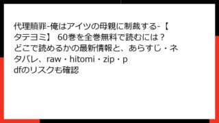 代理贖罪-俺はアイツの母親に制裁する-【タテヨミ】 代理贖罪-俺はアイツの母親に制裁する-【タテヨミ】 60巻を全巻無料で読むには?どこで読めるかの最新情報と、あらすじ・ネタバレ、raw・hitomi・zip・pdfのリスクも確認