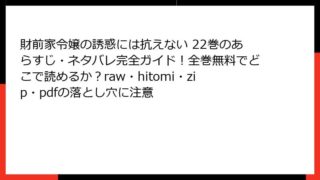 財前家令嬢の誘惑には抗えない 財前家令嬢の誘惑には抗えない 22巻のあらすじ・ネタバレ完全ガイド!全巻無料でどこで読めるか?raw・hitomi・zip・pdfの落とし穴に注意 財前家令嬢の誘惑には抗えない 22巻:使用人順平の禁断の試練が深まる こんにちは、マンガ好きの皆さん! 今日は、Frate原作・SUNGMIN作画による人気エロティック・ロマンス作品『財前家令嬢の誘惑には抗えない』の22巻について、詳しくあ... 2025.11.01 財前家令嬢の誘惑には抗えない青年マンガ