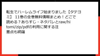 転生でハーレムライフ始まりました【タテヨミ】 転生でハーレムライフ始まりました【タテヨミ】 11巻の全巻無料情報まとめ!どこで読める?あらすじ・ネタバレとraw/hitomi/zip/pdfの利用に関する注意点も網羅 転生でハーレムライフ始まりました【タテヨミ】 11巻:異世界転生の甘美なるハーレム冒険譚 異世界転生ジャンルの人気作として知られる『転生でハーレムライフ始まりました【タテヨミ】』は、主人公が現代からファンタジー世界へ転生し、美少女たちに囲ま... 2025.11.03 転生でハーレムライフ始まりました【タテヨミ】青年マンガ