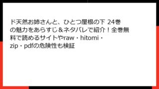 ド天然お姉さんと、ひとつ屋根の下 ド天然お姉さんと、ひとつ屋根の下 24巻の魅力をあらすじ&ネタバレで紹介!全巻無料で読めるサイトやraw・hitomi・zip・pdfの危険性も検証 ド天然お姉さんと、ひとつ屋根の下 24巻:甘くドキドキの同居生活がクライマックスへ! こんにちは、漫画好きの皆さん! 今回取り上げるのは、Financier先生の人気ラブコメディ作品『ド天然お姉さんと、ひとつ屋根の下』の24巻です。このシリ... 2025.11.03 ド天然お姉さんと、ひとつ屋根の下青年マンガ