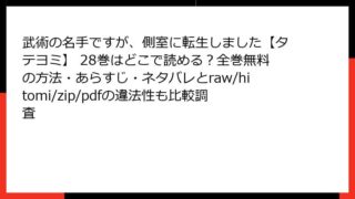 女性マンガ 武術の名手ですが、側室に転生しました【タテヨミ】 28巻はどこで読める?全巻無料の方法・あらすじ・ネタバレとraw/hitomi/zip/pdfの違法性も比較調査 武術の名手ですが、側室に転生しました【タテヨミ】28巻 詳細あらすじレビュー 物語の舞台と主人公の運命の転機 この漫画は、武林最強の名手・千年飛が恋人の裏切りにより命を落とし、異世界の側室として転生するところから始まる異世界転生ロマンス。2... 2025.11.04 女性マンガ武術の名手ですが、側室に転生しました【タテヨミ】