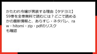 かたわれ令嬢が男装する理由【タテヨミ】 かたわれ令嬢が男装する理由【タテヨミ】 59巻を全巻無料で読むには?どこで読めるかの最新情報と、あらすじ・ネタバレ、raw・hitomi・zip・pdfのリスクも確認 かたわれ令嬢が男装する理由【タテヨミ】59巻:運命を賭けた男装の秘密と学院の陰謀 皆さん、こんにちは! 今日のブログ記事では、人気タテヨミ漫画「かたわれ令嬢が男装する理由」の59巻について、詳しいあらすじを深掘りしてお届けします。この作品は... 2025.11.05 かたわれ令嬢が男装する理由【タテヨミ】女性マンガ