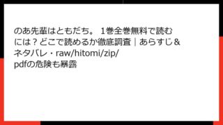 のあ先輩はともだち。 のあ先輩はともだち。 1巻全巻無料で読むには?どこで読めるか徹底調査|あらすじ&ネタバレ・raw/hitomi/zip/pdfの危険も暴露 のあ先輩はともだち。 1巻:オフィスで生まれる意外な友情の物語 こんにちは、マンガ好きの皆さん! 今日のブログでは、ヤングジャンプコミックスから刊行されたあきやまえんま先生の新鋭作『のあ先輩はともだち。 1巻』のあらすじを詳しくお届けします... 2025.11.06 のあ先輩はともだち。青年マンガ