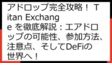 この記事では、Titan Exchangeでのエアドロップ活動に焦点を当て、その始め方から、エアドロップを獲得するための戦略、そして最新情報までを詳しく解説します。