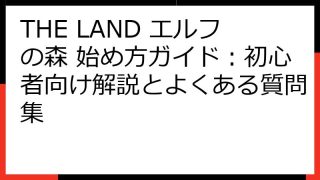 THE LAND エルフの森 THE LAND エルフの森 始め方ガイド:初心者向け解説とよくある質問集