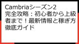 この記事では、Cambriaの基本から最新シーズン情報、効率的な稼ぎ方、そしてリスク対策まで、徹底的に解説します。