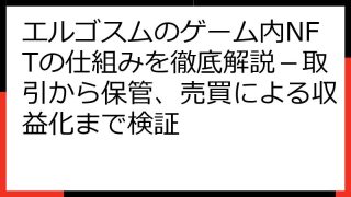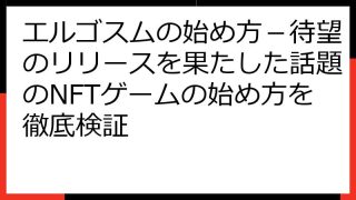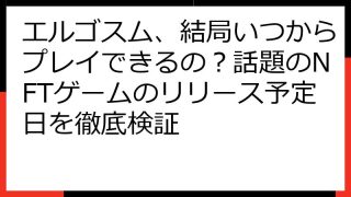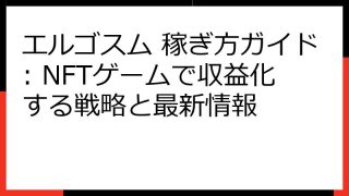 エルゴスムの評判は本当?期待と疑問を徹底解説!最新情報も網羅 エルゴスムは、美麗なグラフィックと魅力的なストーリーで話題の、日本発のNFTゲームです。 リリース前から大きな注目を集め、多くのプレイヤーがプレイを開始しています。 しかし、気に...