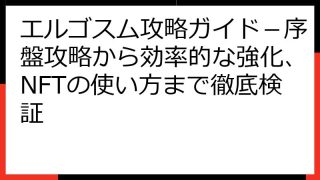エルゴスム エルゴスム攻略ガイド-序盤攻略から効率的な強化、NFTの使い方まで徹底検証 エルゴスム攻略ガイド:初心者から上級者まで完全網羅!NFT獲得&稼ぎ方の極意を伝授! 「エルゴスム」は、美麗なグラフィックと魅力的なストーリーで話題のNFTゲームです。 しかし、NFTゲーム初心者にとっては、どこから手をつければいいか、何を... 2024.10.18 エルゴスム