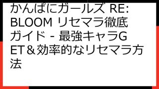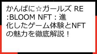 かんぱにガールズRe:BLOOM 稼ぎ方完全ガイド!効率的な育成からNFT取引まで徹底解説 「かんぱにガールズ Re:BLOOM」で効率的に稼ぎたいけど、どこから手をつければいいか迷っている方も多いのではないでしょうか?。 本記事では、キャ...