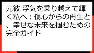 元彼と復縁したいあなたへ:忘れられない気持ちを叶えるための専門ガイド この記事にたどり着いたあなたは、元彼を忘れられず、復縁を心から願っているのではないでしょうか? 辛い気持ち、よく分かります。 しかし、諦める前に、正しい知識と戦略を身につ...