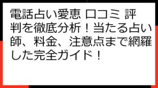 電話占い愛恵の口コミ・評判を徹底解剖!当たる先生から料金、注意点まで完全ガイド 電話占い愛恵について調べているあなたへ、この記事では、電話占い愛恵の口コミや評判を徹底的に分析し、その魅力を余すところなくお伝えします。 「当たる」と評判の先生...