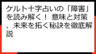 ケルト十字占術:未来の最終結果を読み解く深い洞察 この記事では、ケルト十字占術を用いて、あなたの未来の最終結果を深く読み解くための専門的な知識と洞察を提供します。 ケルト十字占術の基本から、具体的な事例分析、そして未来を最大限に活かすための...