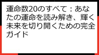 運命数2025が示す未来:秘められた可能性と成功への道標 この記事では、運命数2025というキーワードに焦点を当て、その秘められた意味を探求します。 あなたの生年月日や、特定の年号に関わる数字から導き出される運命数。 それが、あなたの人生に...