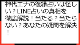 神代エナの復縁占いは怪しい?LINE占いの真相と、本当に当たるのか徹底検証 「神代エナ 復縁占い 怪しい LINE」というキーワードで検索し、この記事にたどり着いたあなた、ありがとうございます。 復縁したいと願う気持ち、そして、占いへの期待...