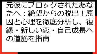 元彼ストーカー被害からの脱出:徹底対策ガイド 元彼からのストーカー行為は、心身ともに大きな負担をもたらします。 このガイドでは、元彼ストーカー被害に遭われている方、またはその可能性を感じている方のために、具体的な対策と長期的な解決策を提供し...
